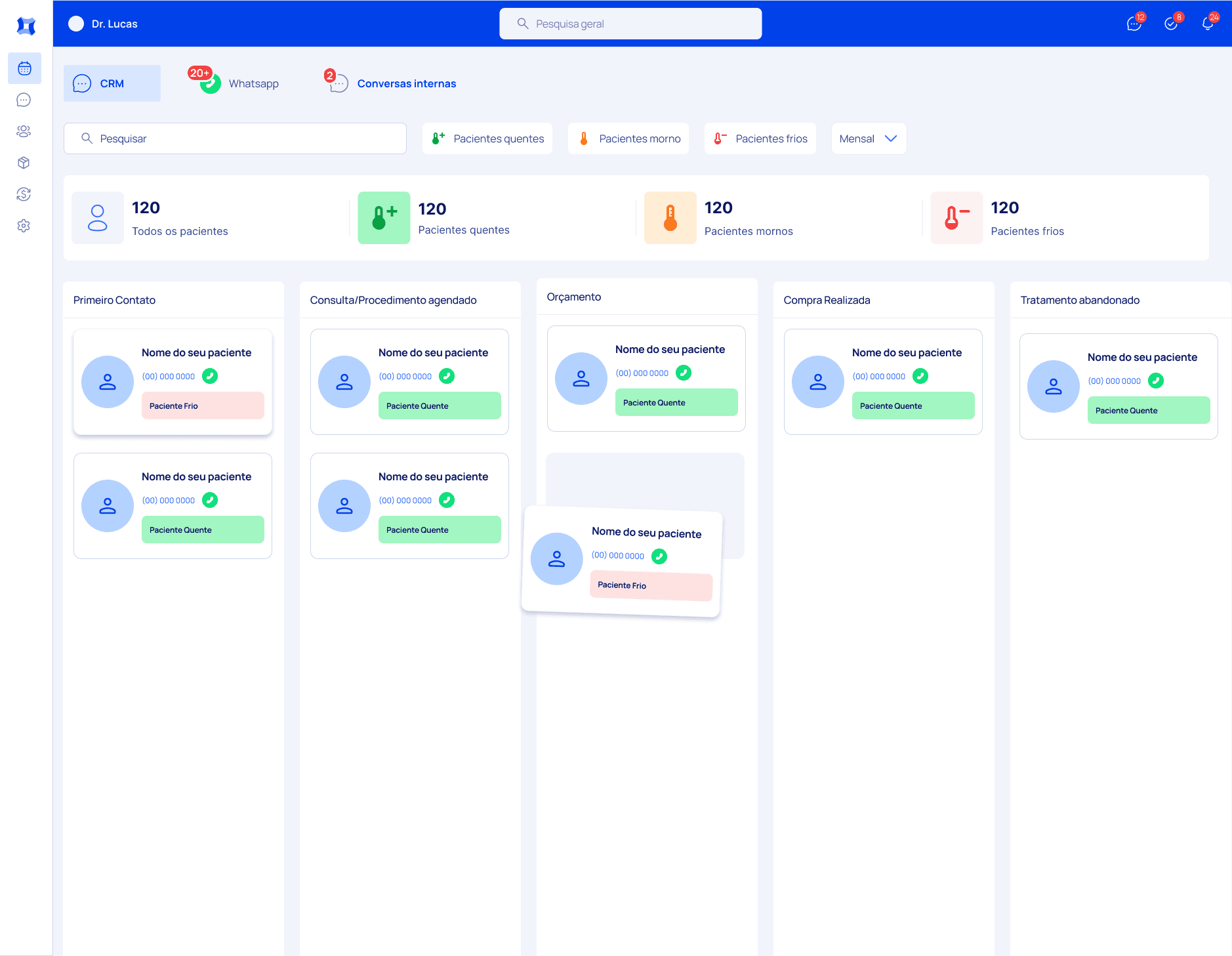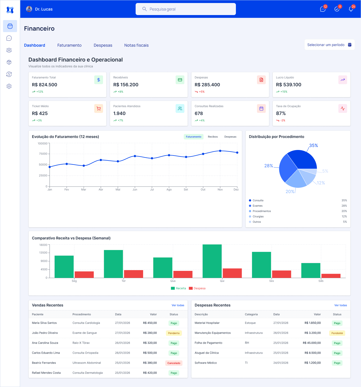Objetivo do produto: centralizar a operação clínica em uma única plataforma, reduzindo fricção operacional e aumentando eficiência do time administrativo.